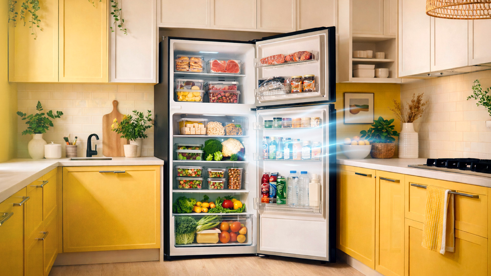 Untuk keluarga kecil hingga sederhana, kapasiti 480L memberi kelegaan dari segi penyimpanan. Stok barangan dapur mingguan, bekas lauk bersaiz besar, minuman untuk anak-anak dan bahan mentah semuanya boleh disusun dengan lebih sistematik.